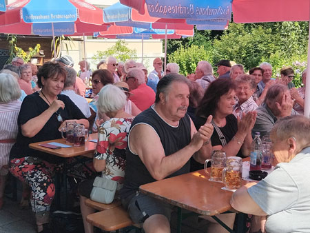 Der Verein lud ein und weit über 200 Mitglieder folgten der Einladung zum Sommerfest an Mariä Himmelfahrt 2025 im Augustinum, früher Insula. Das Wetter strahlte mit viel Sonnenschein vom Himmel und der Wunsch nach Schattenplätzen konnte gerade noch erfüllt werden.