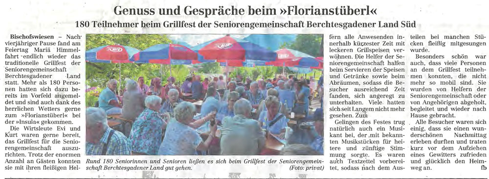 Bericht über das Grillfest 2023, lesen Sie in der BAZ vom 18.08..2023